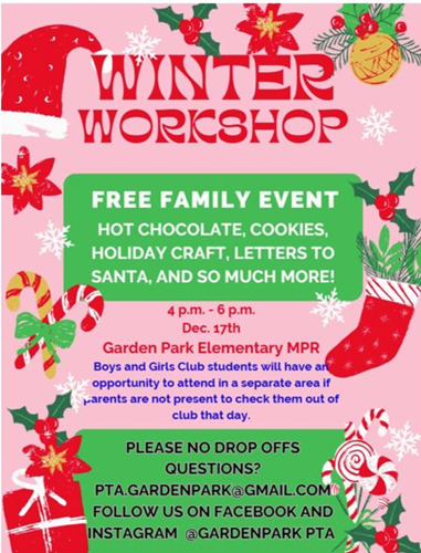 Winter Workshop December 17th 4:00 - 6:00 P.M.